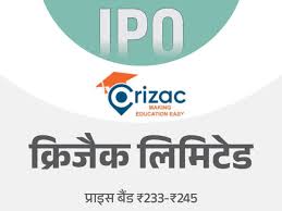 विदेशी शिक्षा क्षेत्र की प्रमुख कंपनी क्रिजैक लिमिटेड इस आईपीओ के जरिए 860 करोड़ रुपये जुटाना चाहती है। कंपनी ने अपने पहले निर्गम के लिए 2 रुपये अंकित मूल्य वाले प्रत्येक इक्विटी शेयर के लिए मूल्य का दायरा 233-245 रुपये तय किया गया है। निवेशक इसके लिए न्यूनतम 61 इक्विटी शेयरों और उसके बाद 61 इक्विटी शेयरों के गुणकों में बोली लगा सकते हैं, उसके बाद इस इश्यू के लिए 61-61 के मल्टीपल में ही निवेश किया जा सकेगा।