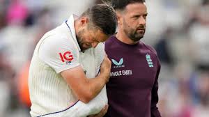 अनुभवी तेज गेंदबाज की चोट इंग्लैंड के लिए एक बड़ा झटका है, जो पहले से ही कप्तान बेन स्टोक्स के बिना खेल रहे हैं, जो कंधे की मांसपेशी में खिंचाव के कारण मैच से बाहर हो गए हैं। जोफ्रा आर्चर, जिन्होंने चार साल में अपना पहला टेस्ट लॉर्ड्स में खेला और फिर ओल्ड ट्रैफर्ड में खेला, उन्हें ब्रायडन कार्स के साथ आराम दिया गया। स्पिनर लियाम डॉसन भी मैच के लिए उपलब्ध नहीं हैं।