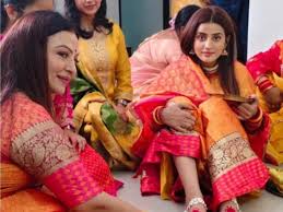 तस्वीर में उनकी मां नीलिमा सिंह ने भी हू-ब-हू ऐसी ही साड़ी पहनी हुई है। वह अक्षरा के पैरों में आलता लगा रही हैं। उनके भी हाथों में चूड़ियां हैं, माथे पर बिंदी है और बाल खुले हैं। यह तस्वीर किसी रस्म के दौरान खींची गई लग रही है, इसमें आसपास कुछ और महिलाएं भी नजर आ रही हैं, जिससे अंदाजा लगाया जा सकता है कि यह कोई पारिवारिक कार्यक्रम या खास रस्म हो रही है।