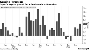जापान के निर्यात में नवंबर में सालाना आधार पर छह प्रतिशत की वृद्धि