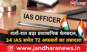 34 IAS समेत 72 अफसरों का रातों-रात तबादला.. 9 जगहों के SDM भी हटाए गए, देखें पूरी लिस्ट