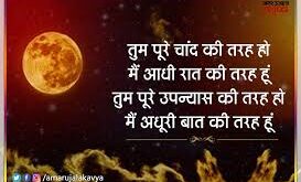 बस, मैं और चांद. -बीनू भटनागर- थोड़ी सी बूंदे गिरने से,धूल बूंदों मे घुलने से,हर नजारा ही साफ दिखता है।रात सोई थी मैं,करवटें बदल बदल कर,शरीर भी कुछ दुखा दुखा सा था,पैर भी थके थके से थे,मन अतीत मे कहीं उलझा था।खिड़की की ओर करवट लिये,रात सोई थी मैं।अचानक नींद …