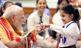 रक्षाबंधन के अवसर पर स्कूली छात्राओं ने प्रधानमंत्री मोदी को बांधी राखी… नई दिल्ली, 09 अगस्त। देश भर में शनिवार को रक्षाबंधन का पर्व पूरे हर्षोल्लास के साथ मनाया जा रहा है। भाई-बहन के रिश्ते को समर्पित इस त्योहार पर दिल्ली के 7, लोक कल्याण मार्ग स्थित प्रधानमंत्री आवास पर …